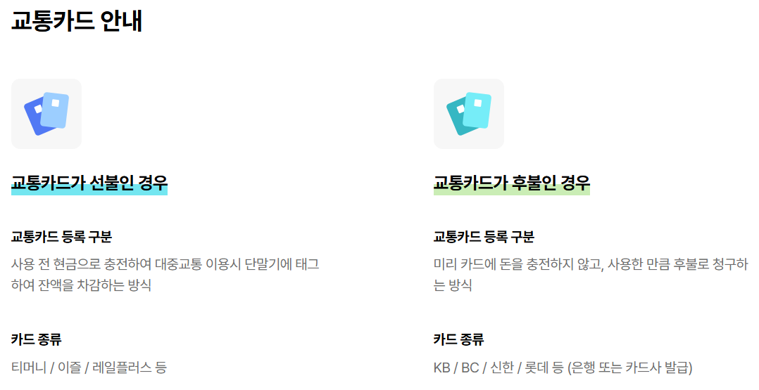 1번. 교통카드를 준비하세요. 교통카드에는 2가지의 종류가 있습니다.